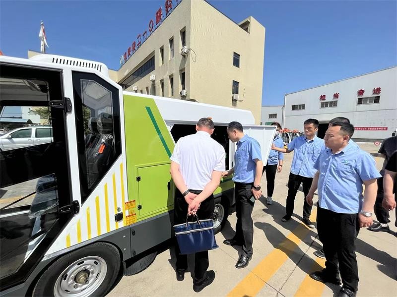 首先,白亞偉一行先行參觀了公司生產(chǎn)區(qū),深入現(xiàn)場實地了解新能源清掃車系列產(chǎn)品的研發(fā)、生產(chǎn)、銷售及主推產(chǎn)品性能、特點、適用范圍等情況。隨后,在會議室進(jìn)行座談。
