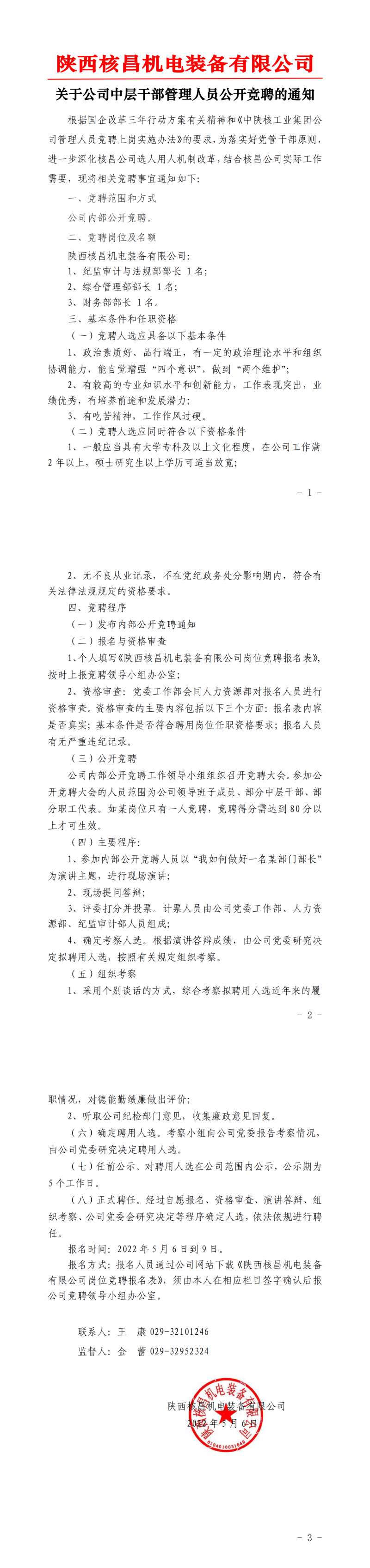 陜西核昌機(jī)電裝備有限公司內(nèi)部公開競聘報(bào)名表